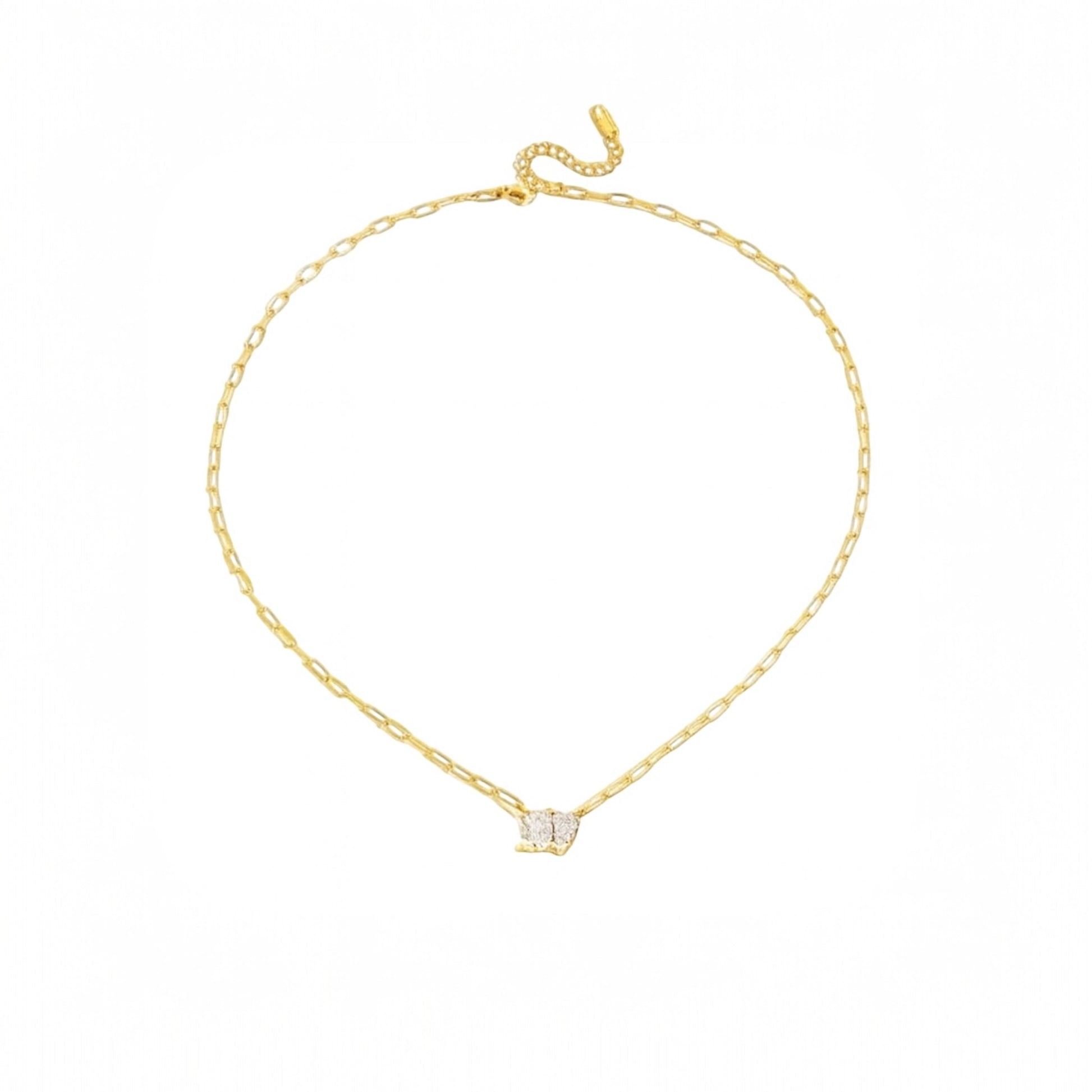 Elevate your everyday look with the Gold Geometric Pendant Link Necklace, a sleek piece that balances modern design with timeless shine. Crafted from stainless steel and plated in radiant 18ct gold, this necklace features a bold paperclip-style chain paired with two geometric pendants — a polished rectangle and a sparkling triangle — for a unique yet versatile finish. Adjustable for the perfect fit, it layers beautifully or stands out on its own.