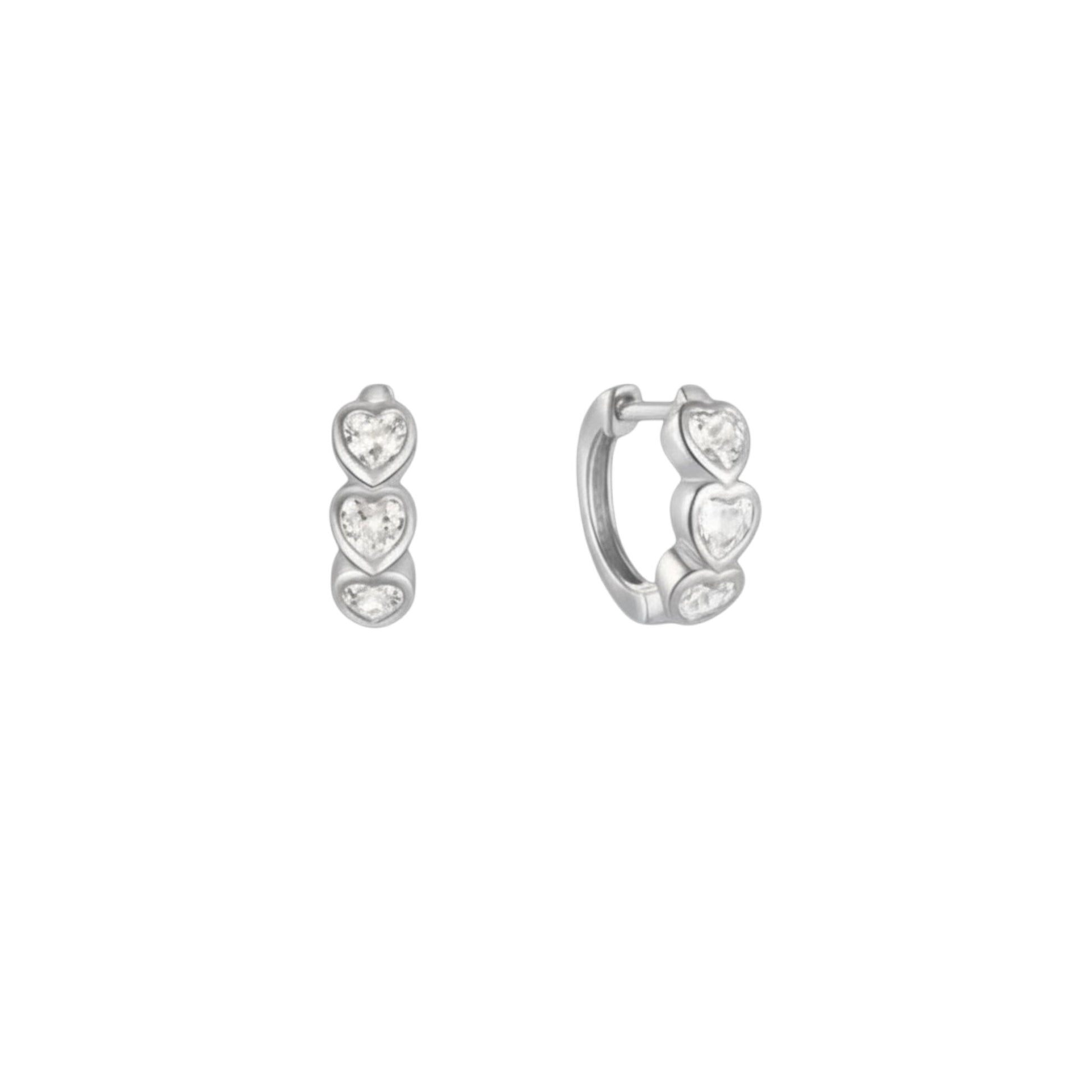 The Heart Huggie Hoop Earrings bring romance and refined sparkle with three delicate heart-shaped stones - perfect for everyday elegance or evening shine.