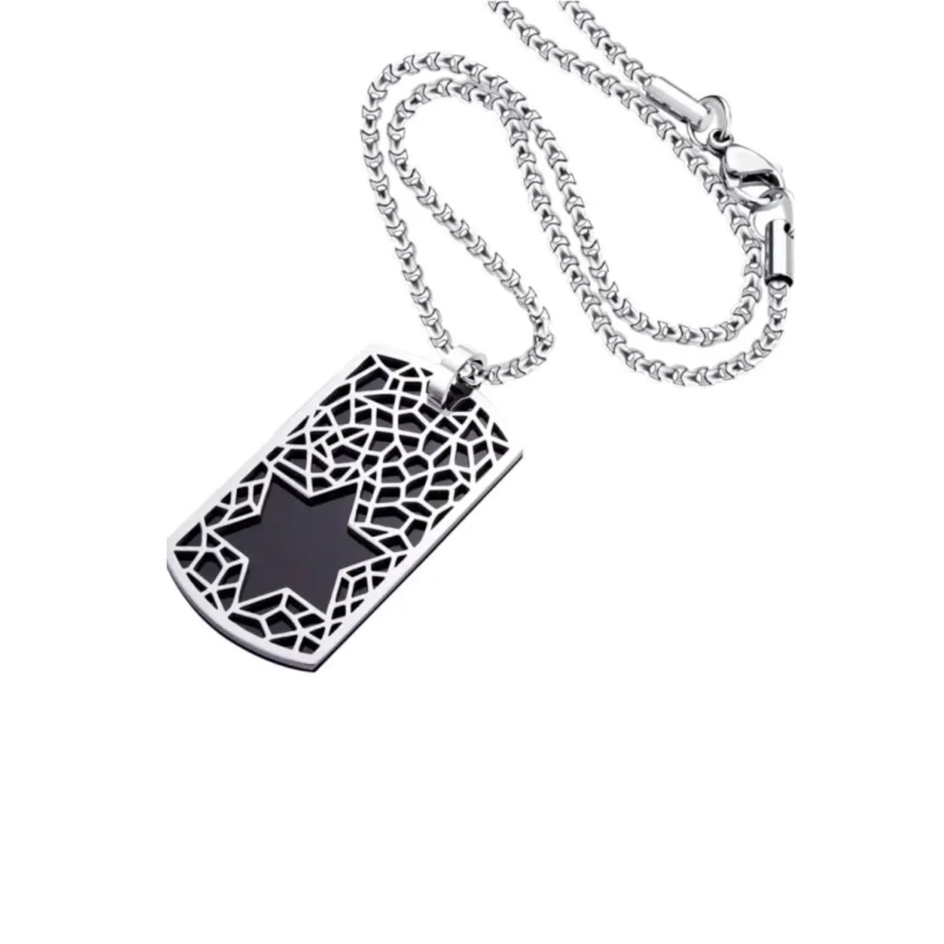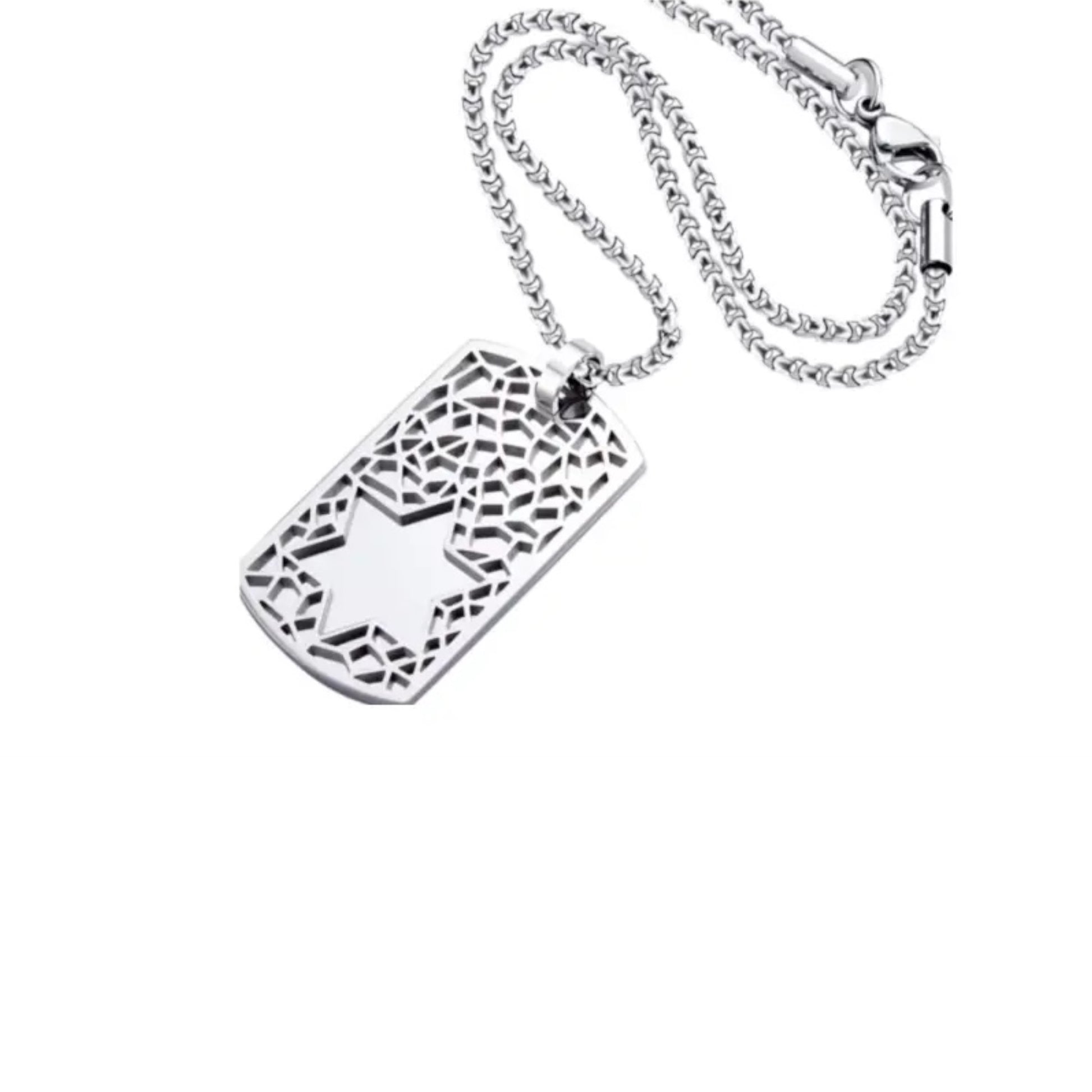 A contemporary expression of faith and identity, the Star of David Dog Tag Necklace blends timeless symbolism with modern design. The sleek rectangular tag features a cut-out Star of David framed by intricate detailing, striking the perfect balance between bold presence and refined elegance. Crafted for durability and versatile styling, this necklace is equally at home as a daily accessory or as a meaningful statement of tradition and heritage. Worn solo or layered, it’s a powerful piece that speaks to faith, strength and individuality.