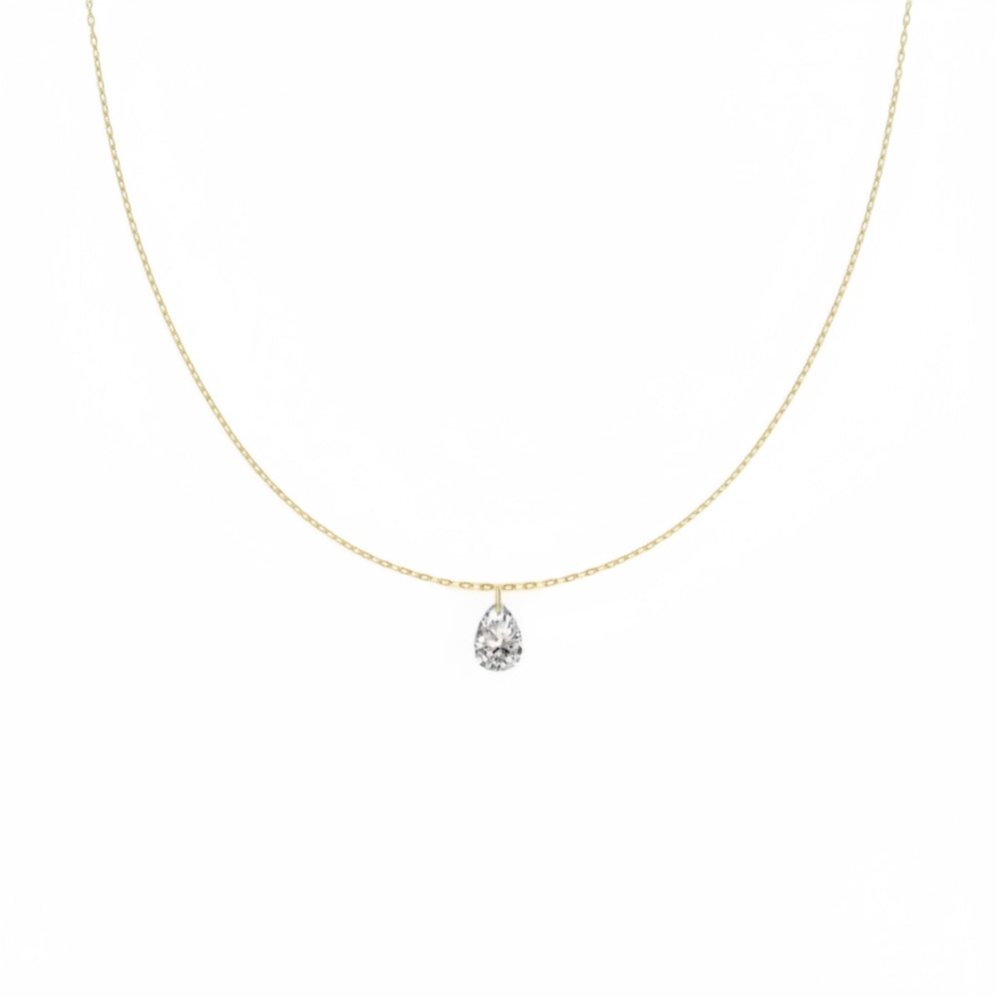 The Teardrop Stone Necklace - a delicate sterling silver chain with a sparkling teardrop-cut stone, plated in gold or rhodium for versatile elegance.